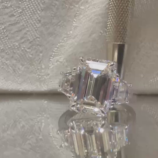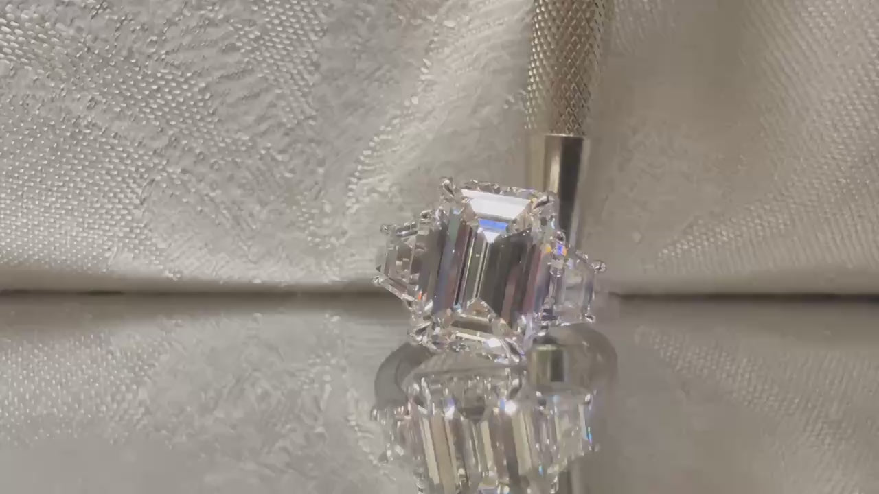 Emerald 3 Stone Ring: 4.92 F VS1 14kw
